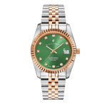 Jacques du Manoir sophistication and elegance come together in this Swiss Made dress watch from Jacques du Manoir. Crafted with a solid stainless steel case, it features a striking classic green dial set with sparkling Swarovski crystal hour markers for a refined touch of luxury.